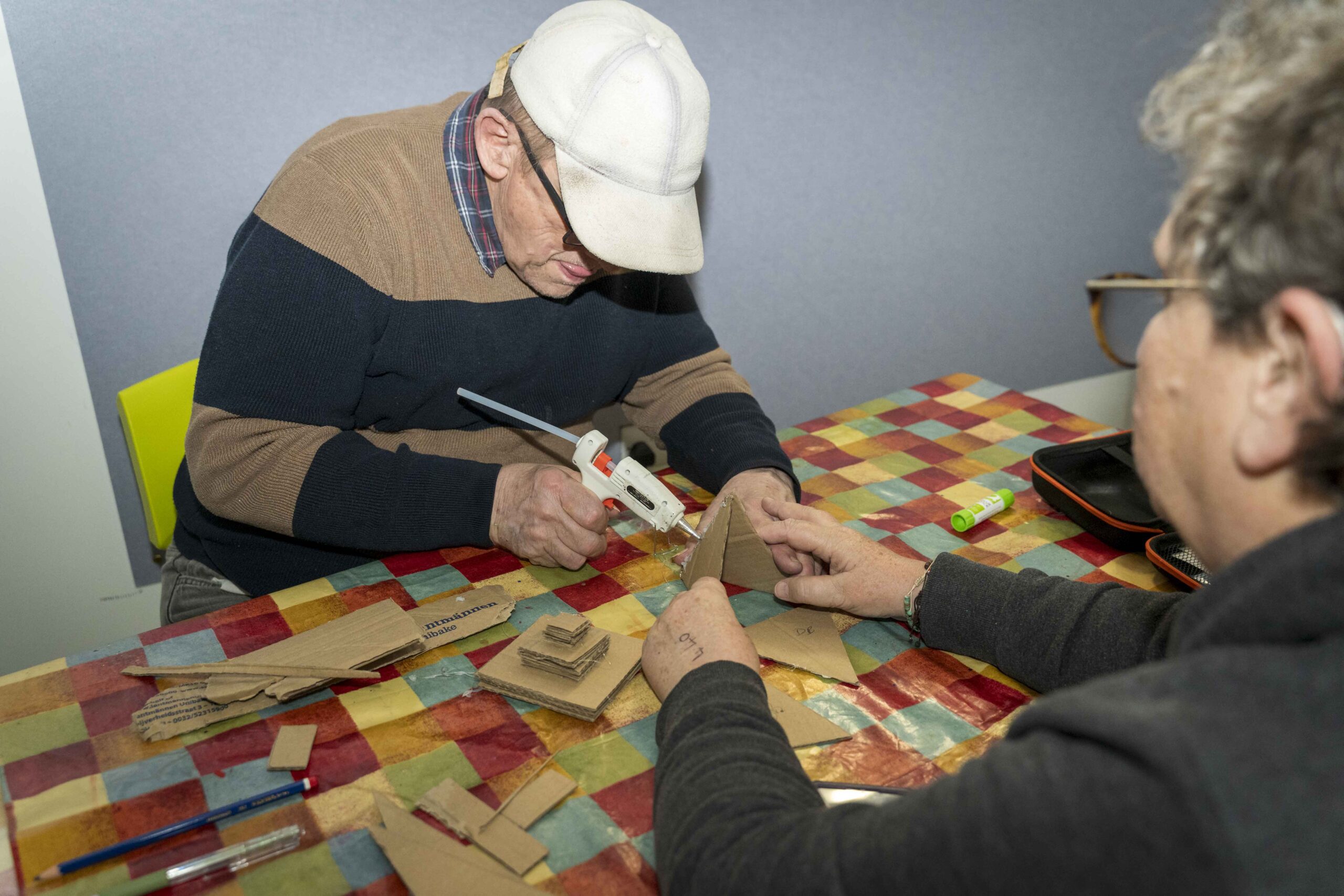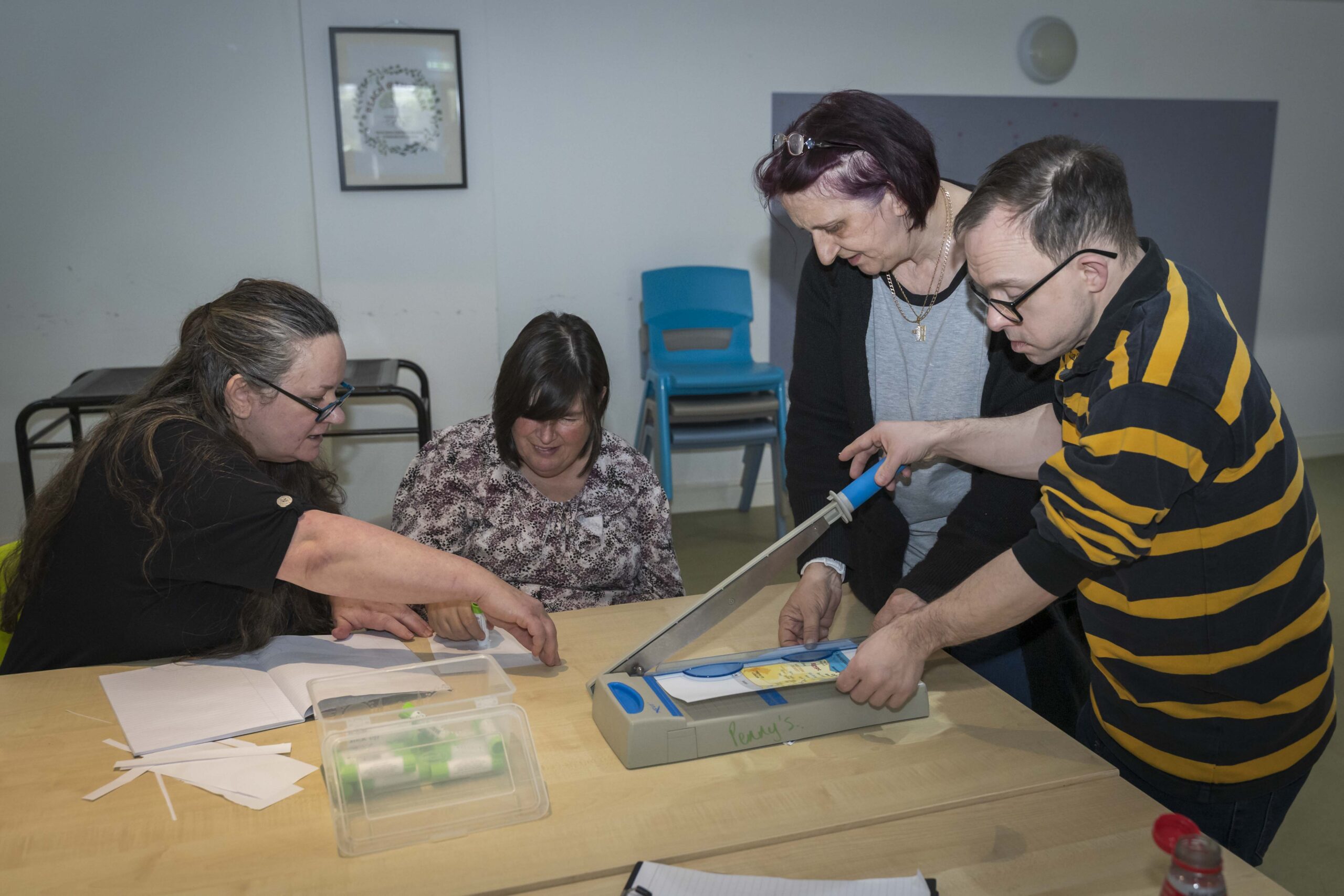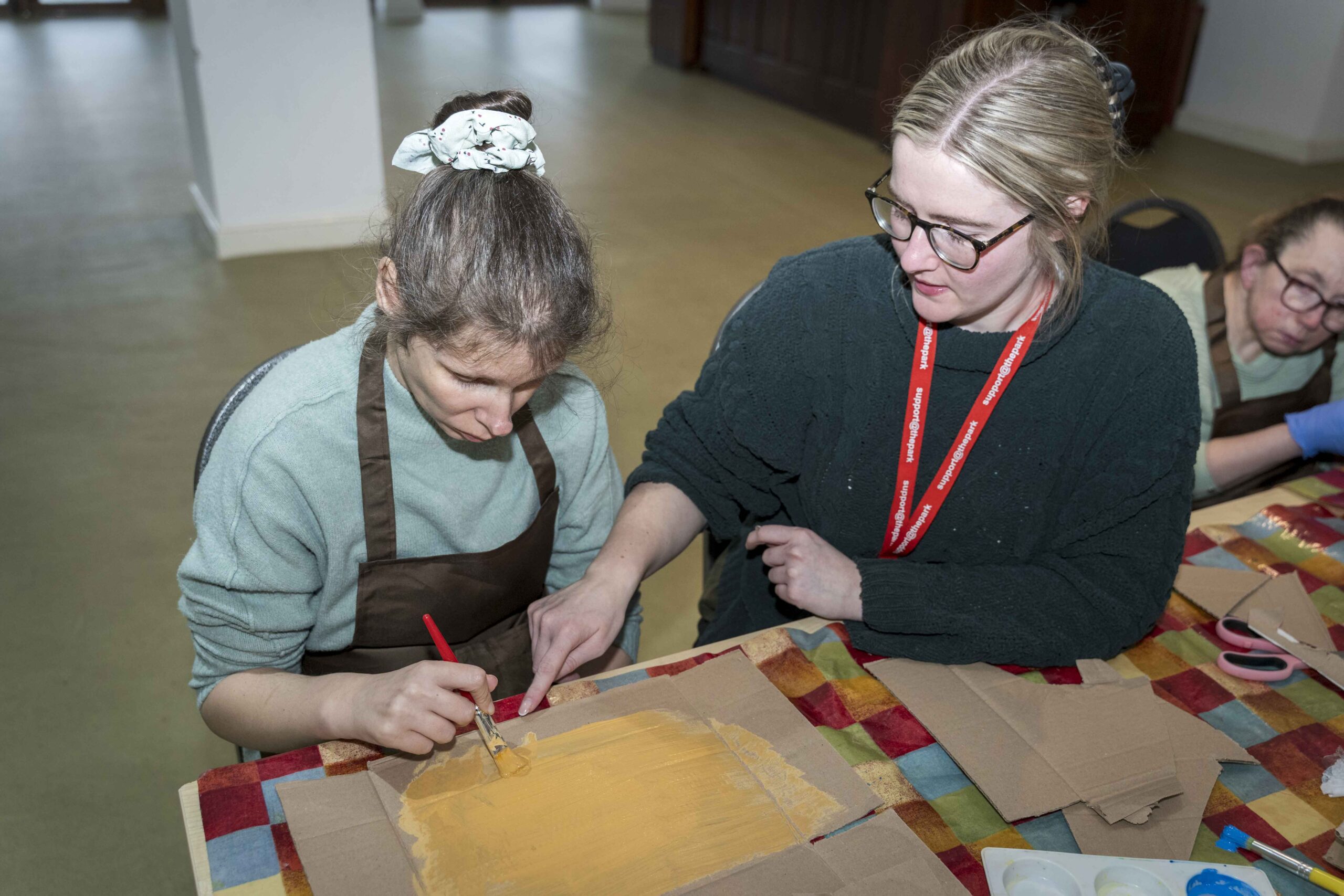 Freddie's Fibre Friends, Bowden Derra, Group activity with residents and staff layering felt sheets, promoting creativity and inclusion, @ThePark,